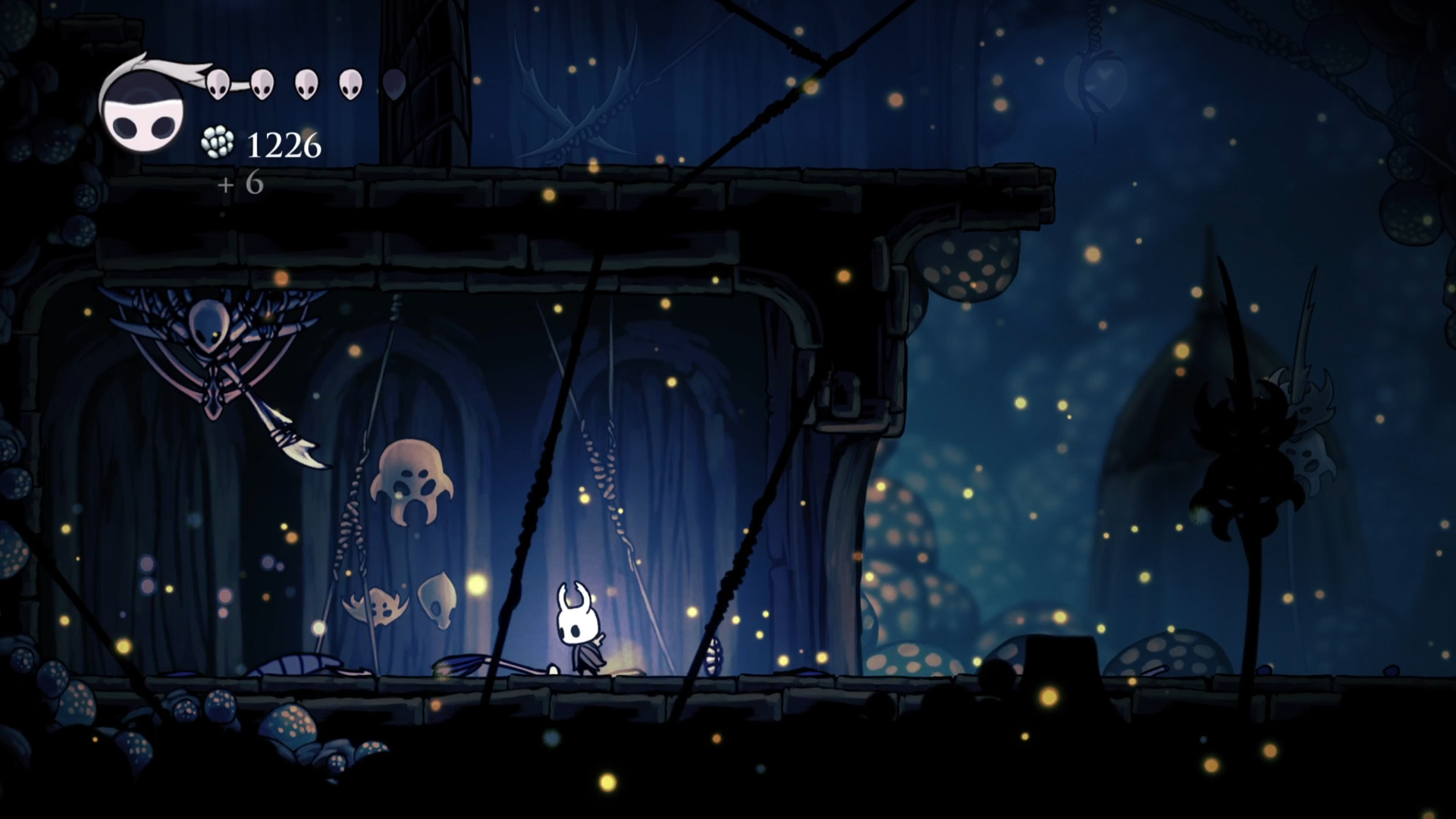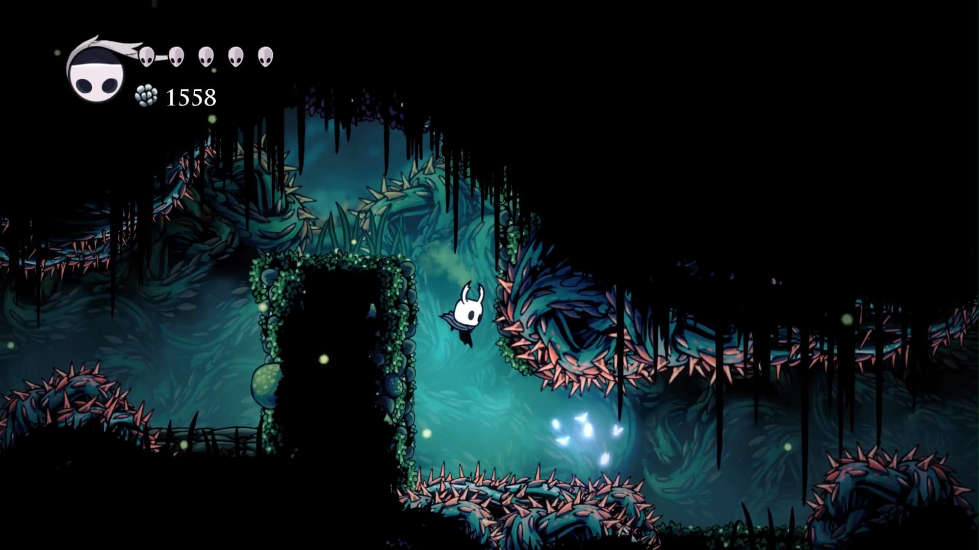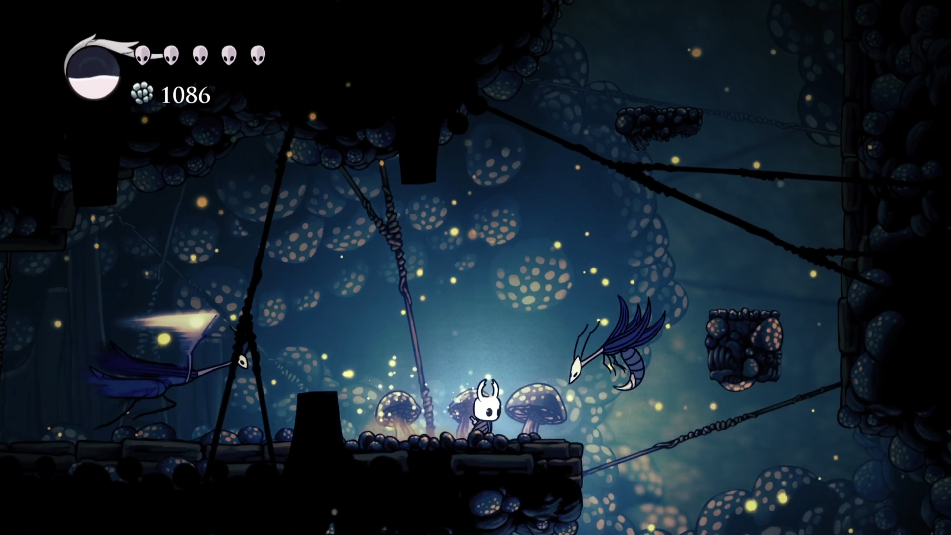 Началась сессия там же, где остановилась прошлая. После боя с Хорнетт я дошел до конца Зеленой тропы, не нашел там ничего интересно и пошел обратно в сторону Забытого перепутья. А по пути зашел в несколько ранее не доступных мест. С помощью навыка "Рывок" смог забрать 2 амулета и спасти одну гусеничку. И вот я в забытом перепутье. В первую очередь зашел в логово Гусеничек. Оказалось, за их спасение дают награду. Помимо щедрого доната Гео, папаша гусеничек выдал мне осколок маски. Судя по всему, нужно собрать 4 таких, чтобы увеличить количество ХП.