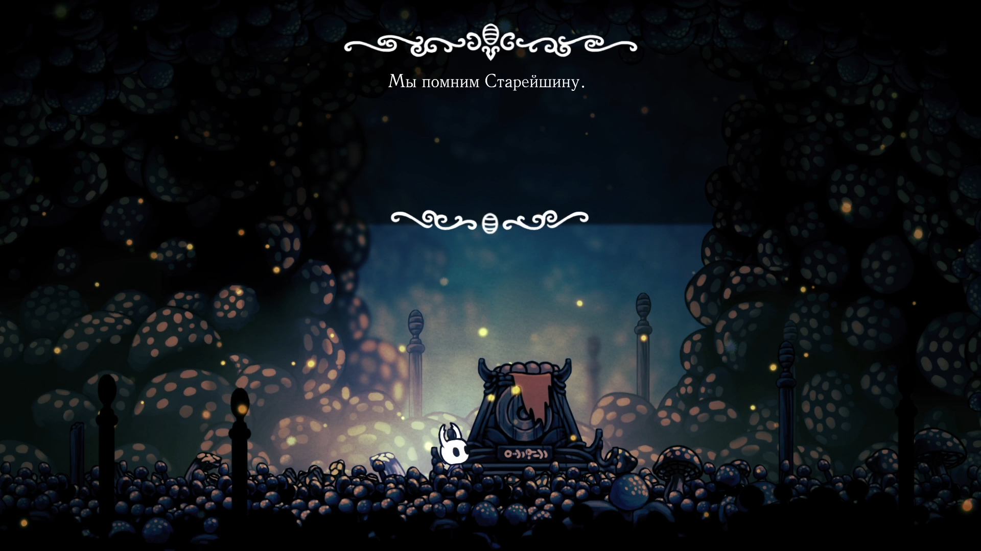 Недалеко от сражения с грибами я обнаружил какой-то алтарь, или может могилу? При взаимодействии можно просто прочитать надпись про какого-то Старейшину. Как всегда, очень интересно, но ничего не понятно.