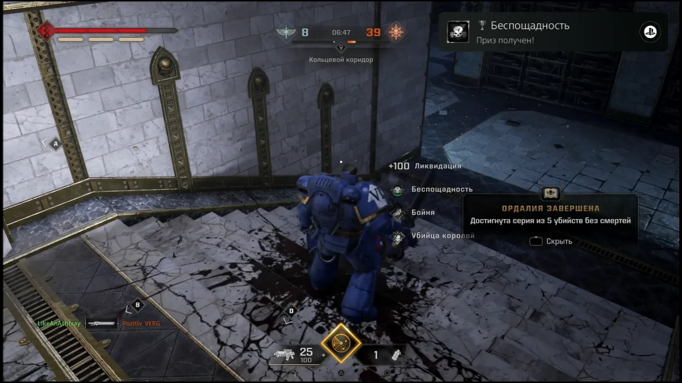 🏆 Беспощадность — серия из пяти убийств без смертей в режиме Вечная война. Зашли в приватное лобби и начали убивать друг друга. Снова и снова. Пять раз подряд. Это нас сблизило. Настоящее братство Империума начинается с тимкиллов.