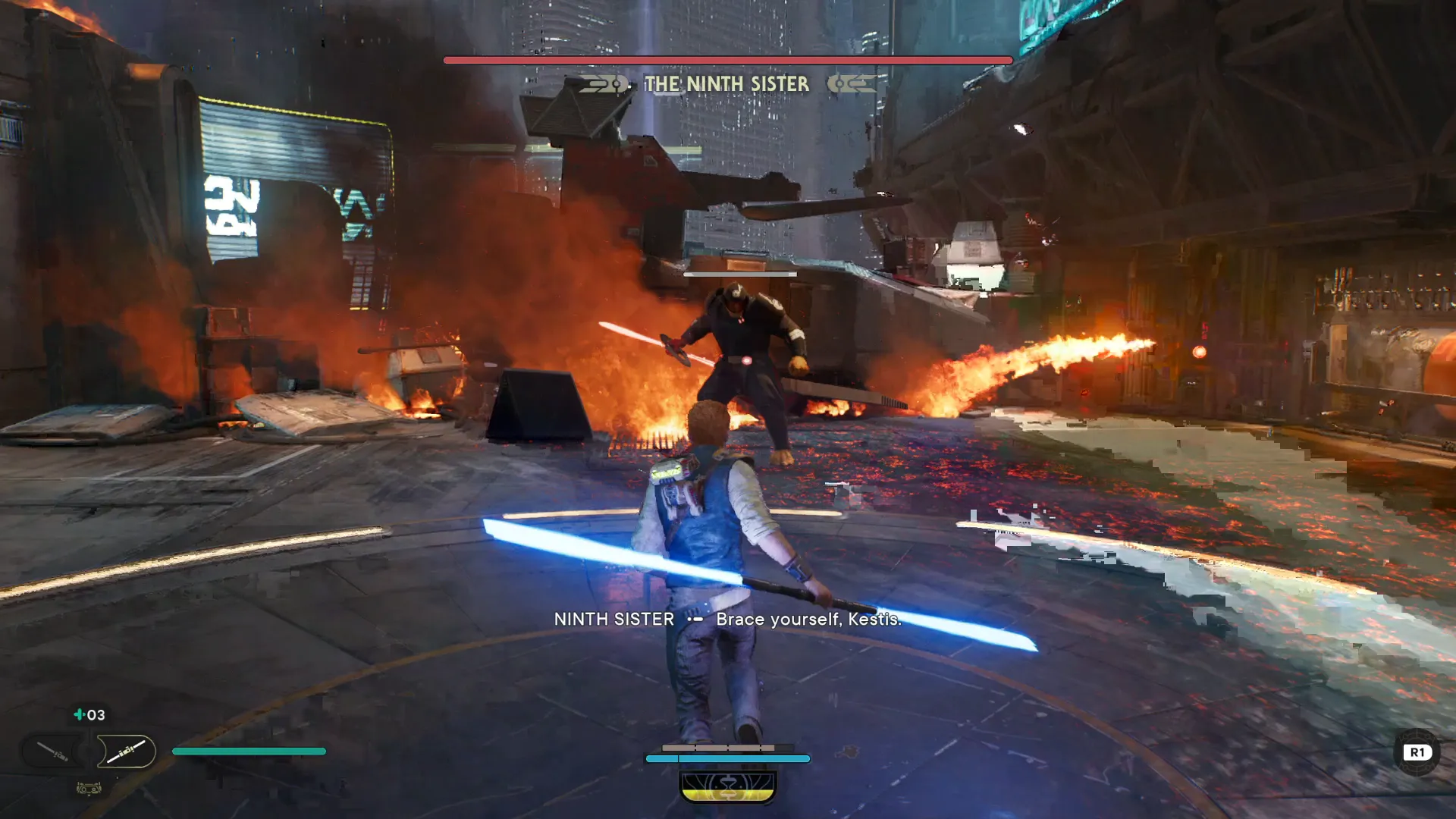 Вскоре герой пребывает на другую планету, в которой есть бар, являющийся по совместительству Хаб-локацией. Лвл дизайн построен по правилам метроидвании. Открытое пространство, иди куда хочешь, но почти никуда в итоге не попадешь потому что нет нужного навыка или предмета. И честно скажу, мне было даже интересно все это исследовать, разгадывать загадки и головоломки (коих в игре достаточно). Но уже скоро я начал душиться все сильнее и сильнее из-за одной лишь механики, которая сломала все впечатление от игры. Да, Чеховское ружье выстрелило, речь про невозможность отменить анимацию атаки. Казалось бы, ну и что? Просто привыкаешь к этой игровой условности и все. Но я не соглашусь. Это игра про Джедаев, про ураганные и красивые сражения на световых мечах. Про скорость, реакцию, красоту боя и удовлетворение от геймплея. Такое описание в точности подходит под игру Sekiro, но, к сожалению не про джедаев.